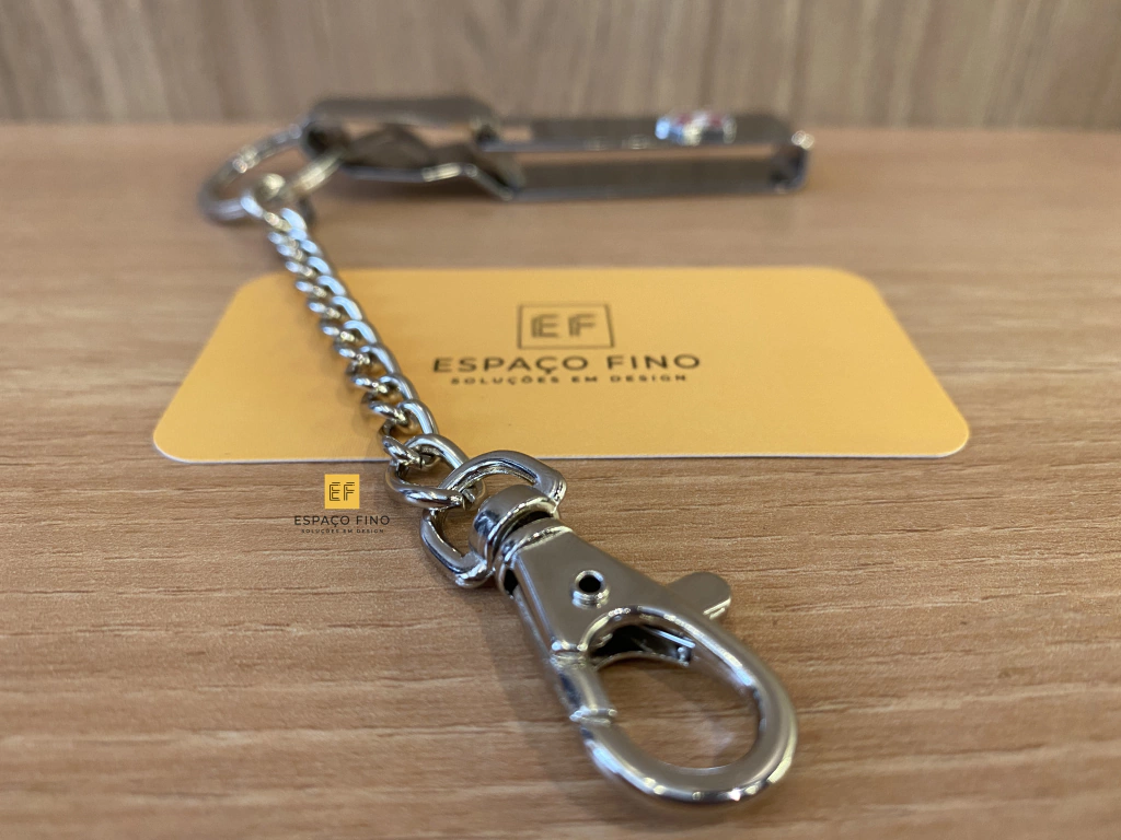 - Possui mosquetão e corrente de aço inox para que seu canivete fique seguro;