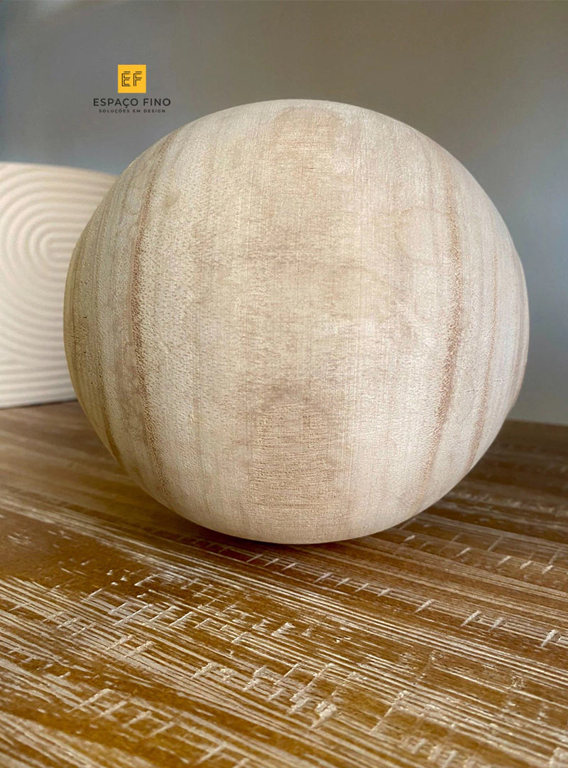 16418 – Escultura Esfera Decorativa em Madeira Clara 13cm